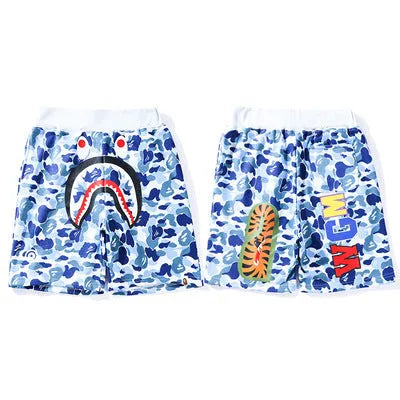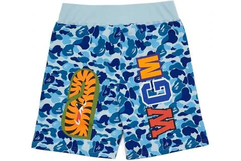Bape Abc Camo Wgm Print Shark Sweatshorts Celeste