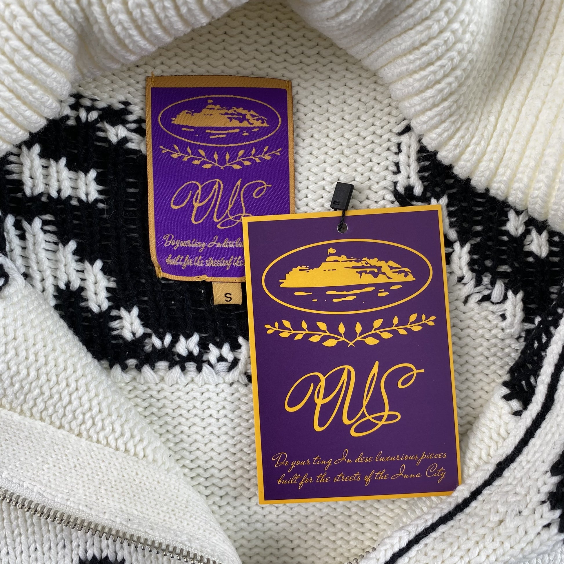 Campera Corteiz VVS Jacquard Knit Blanca