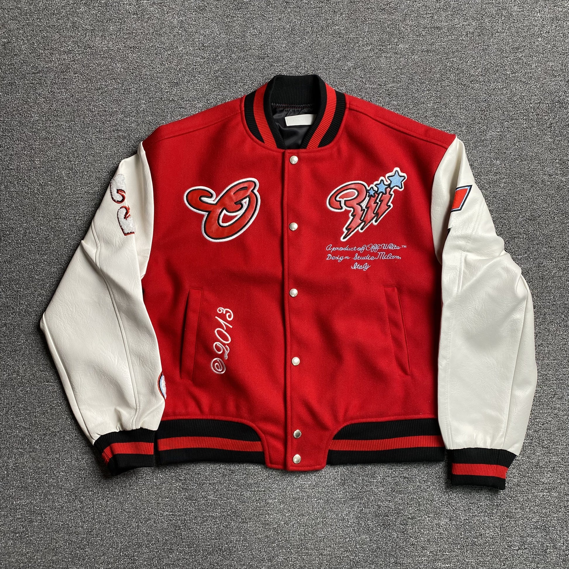 OFF WHITE PATCHWORK CAMPERA CHAQUETA VARSITY JACKET NEGRA