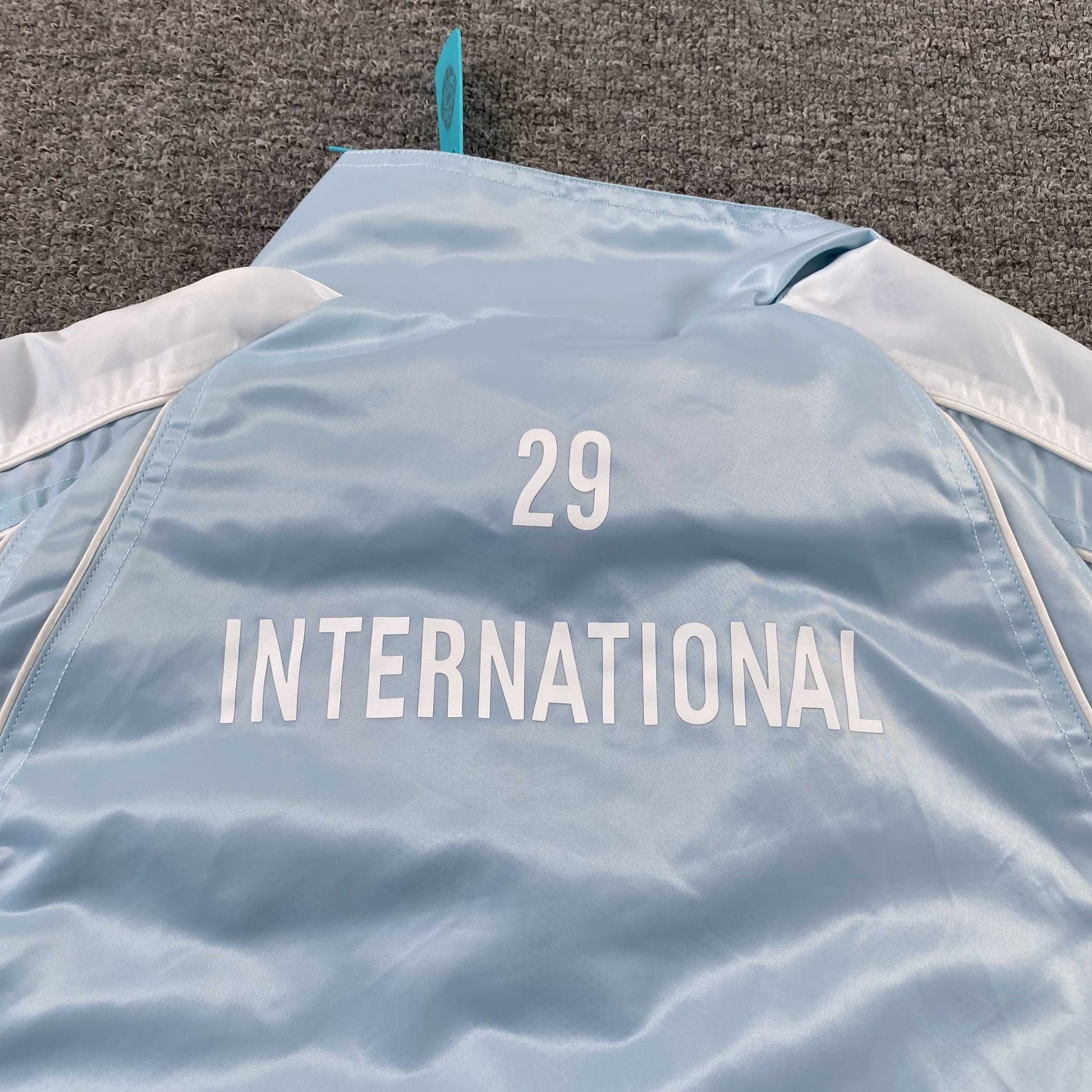 Campera Supreme Satin Piping Pullover Celeste